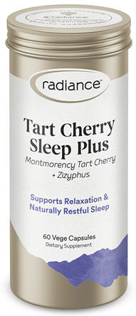 Radiance Tart Cherry Sleep Plus Combines the Synergistic Effects of Montmorency Tart Cherry, Providing Bioactive Substances to Help Support Good Sleep, the Sedative Herb, Zizyphus, to Help Minimise Anxiety, Stress and Worry.